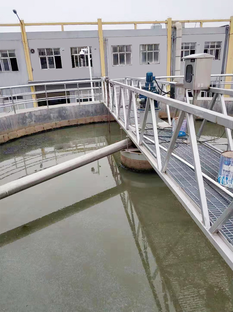 中心传动悬挂式浓缩机由带电动机立式减速机、回转轴承、主轴、刮臂、刮板、浓集栅条,稳流筒、控制柜等组成。制臂在驱动装带动下绕中心轴旋转,刮臂上的刮泥板沉积在池底的污泥由外向内推向池心集泥坑。当运行过程中,由于刮板、臂受异物卡塞或积泥过多等意外原因导酸传动过,过保护机构动作,切断电源,自动报警停机