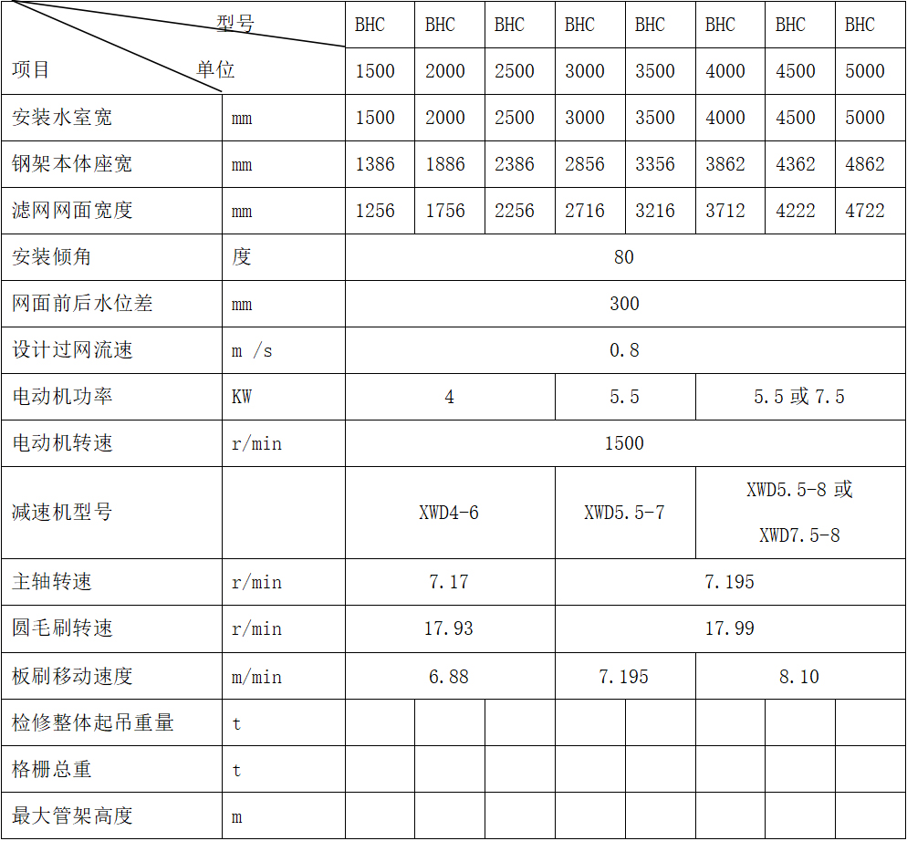 BHC型格栅由支撑钢架、拦污网篦、板刷、圆毛刷、驱动装置和传动装置等组成。