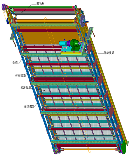 板刷和圆毛刷是整个格栅的功能执行部分,它把截留在网篦上的杂草、污物等清理到冲渣槽内,实现清污的目的。