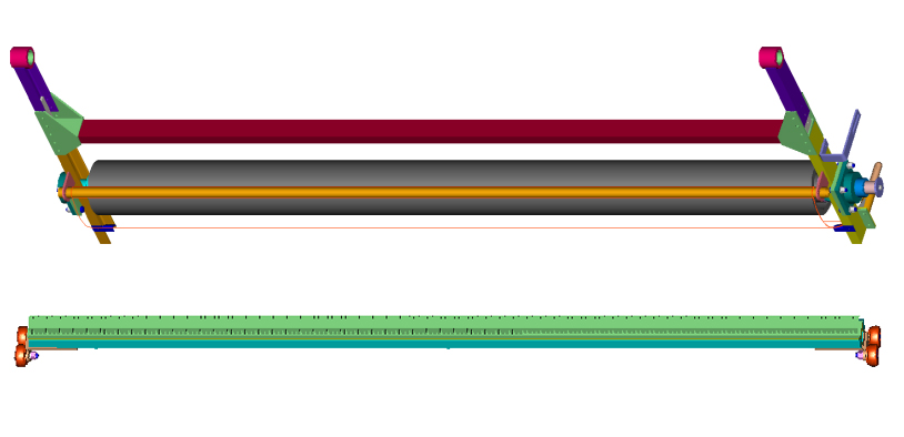 本格栅采用电动机驱动,经行星摆线针轮减速器减速后,通过一级链带动主轴旋转,实现格栅执行工作机构的运动。