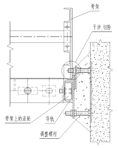 (2)骨架整体进入槽钢导轨后,让骨架上、下移动数次,经检查无卡阻后,再将导轨焊接、灌浆。