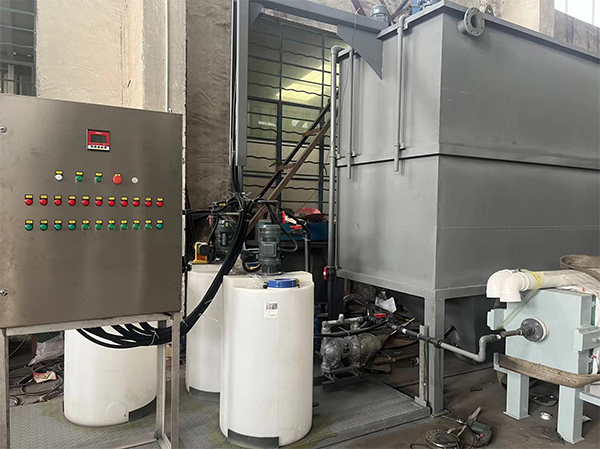 4、处理过程:设备自动完成预处理、沉淀工序,当清水池的液位达到高位时,排水泵自动启动进行排水。